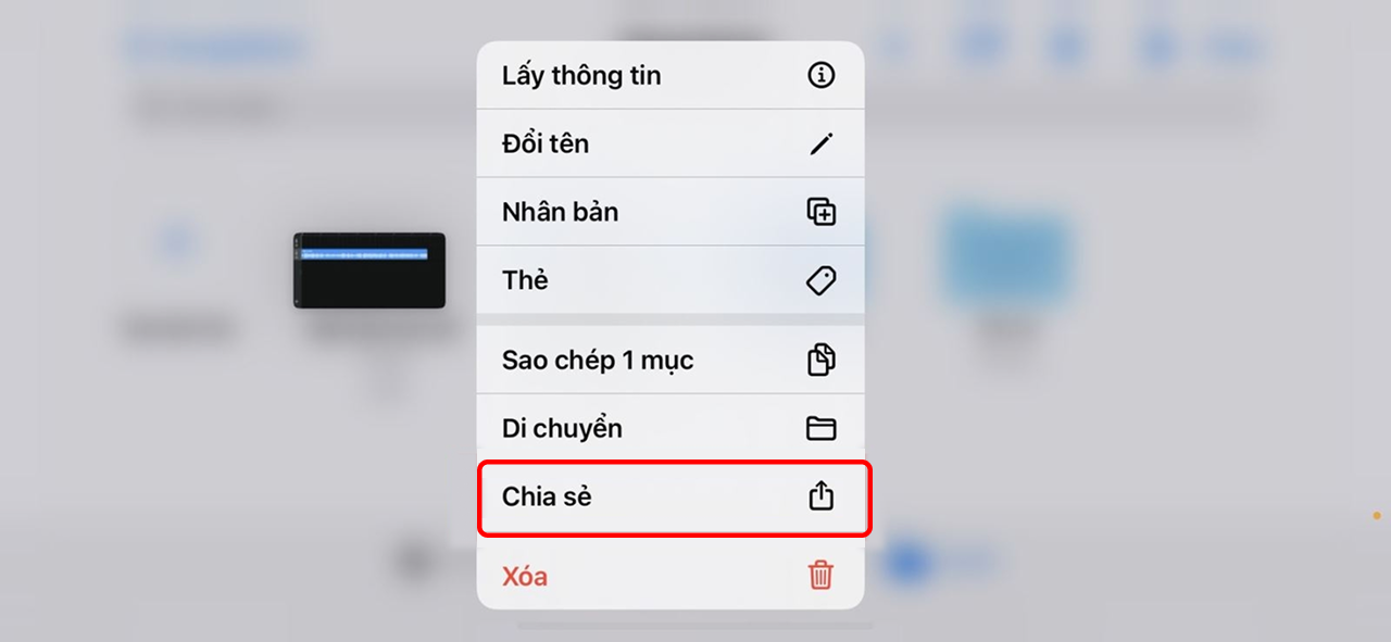 Bước 10: Bạn hãy nhấn và giữ vào bài hát mà bạn vừa mới tải lên, sau đó chọn tùy chọn để Chia sẻ.