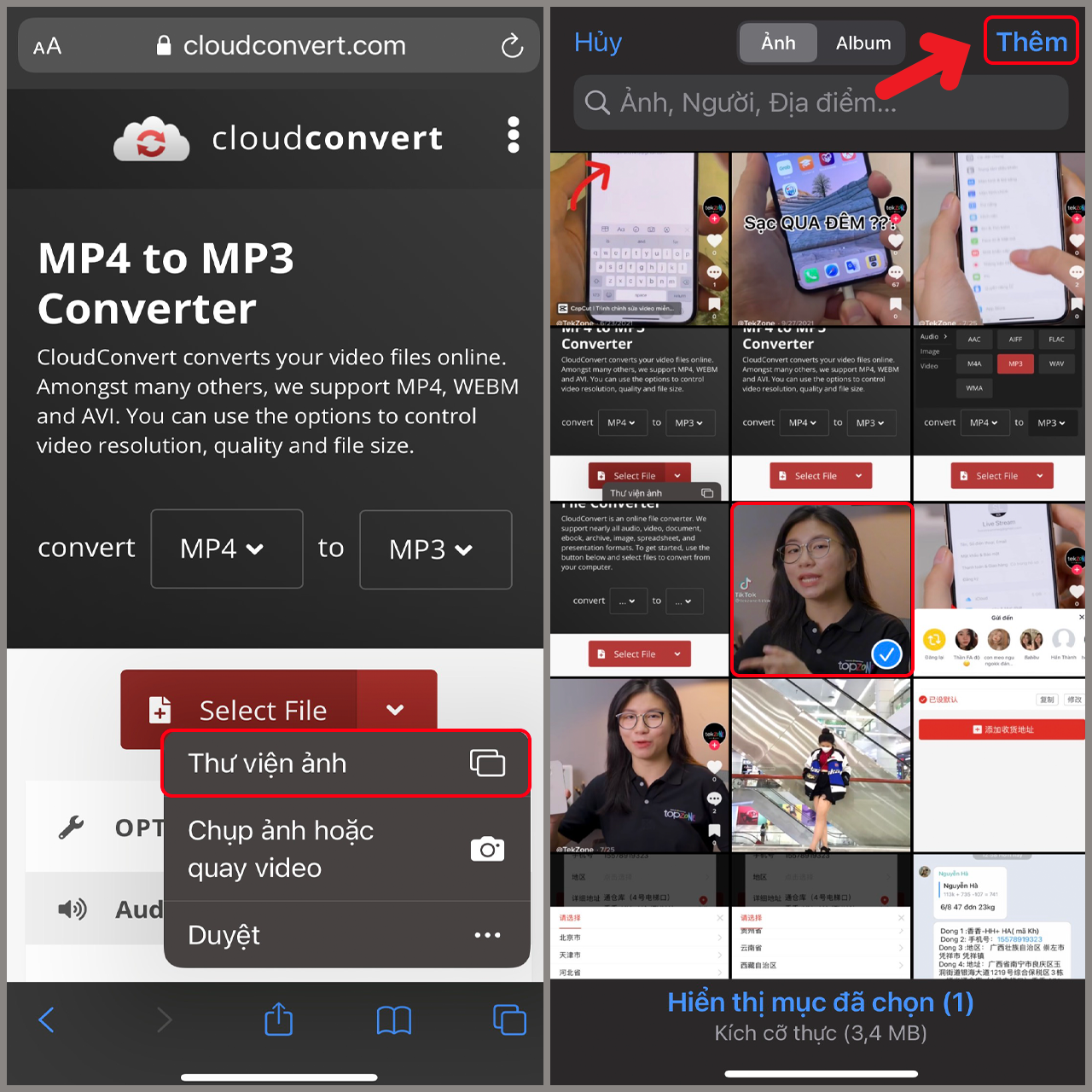 Bước 3: Bạn chọn Thư viện ảnh => Chọn Video đã tải và cuối cùng chọn Thêm.