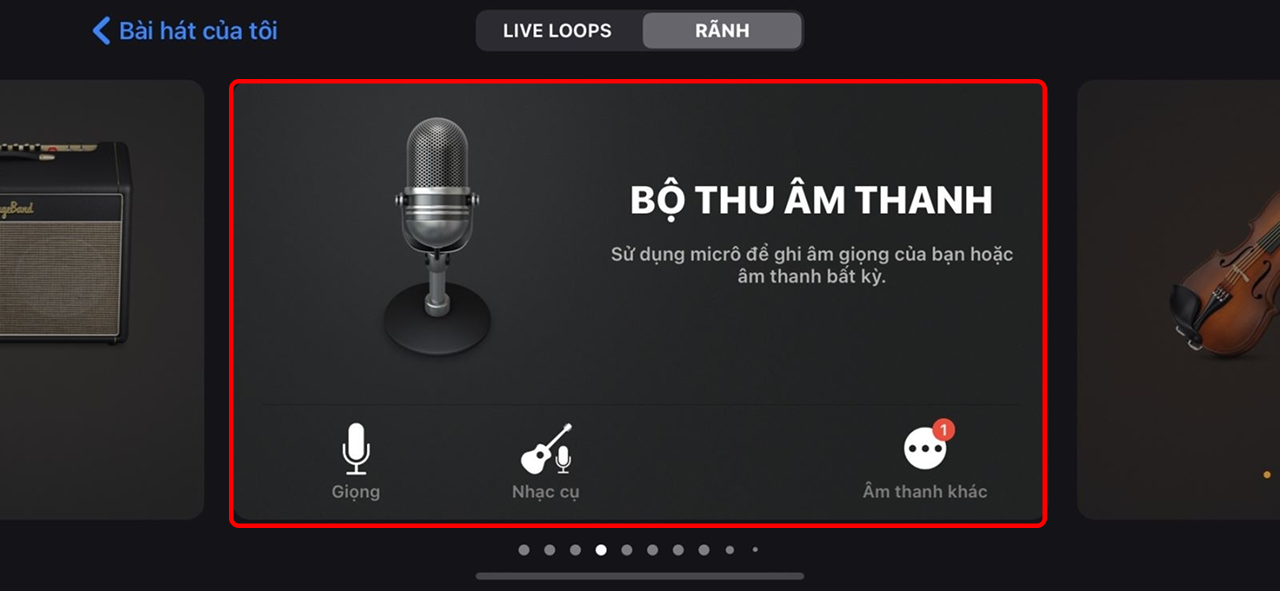 Bước 6: Bạn cần vào ứng dụng GarageBand. Sau khi đã mở ứng dụng, bạn hãy tìm kiếm và chọn lựa mục BỘ THU ÂM THANH trong danh sách tính năng của nó.